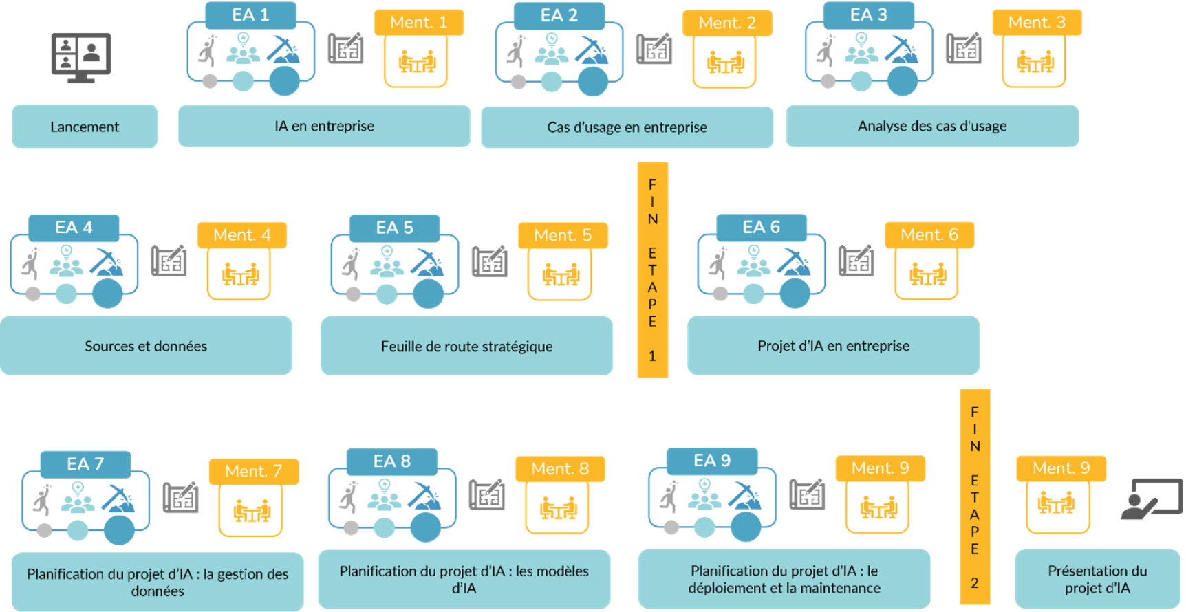 En rejoignant le parcours ACTIVATION  IA, vous bénéficierez d’une formation complète et immersive, conçue pour transformer votre PME grâce à l’intelligence artificielle. Ce programme de 70 heures, réparties sur 12 semaines, allie théorie, pratique, application en entreprise et mentorat pour vous offrir une expérience enrichissante et percutante.